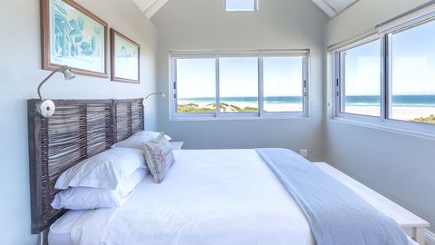 As tranquil as its name suggests, Sand Piper guesthouse is decorated in soothing, beachy shades. Windows and sliding doors are picture frames for nature, highlighting spectacular views of the beach, sea and indigenous garden. The main house has one bedroom downstairs and three upstairs, as well as a self-contained cottage above the garage. Three of the bathrooms feature bathtubs, and two of the upstairs bedrooms spoil guests with both garden and sea views.